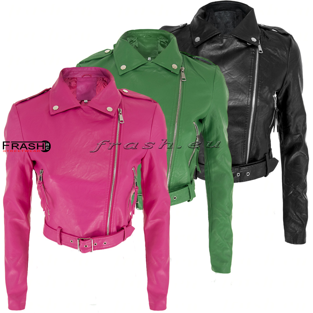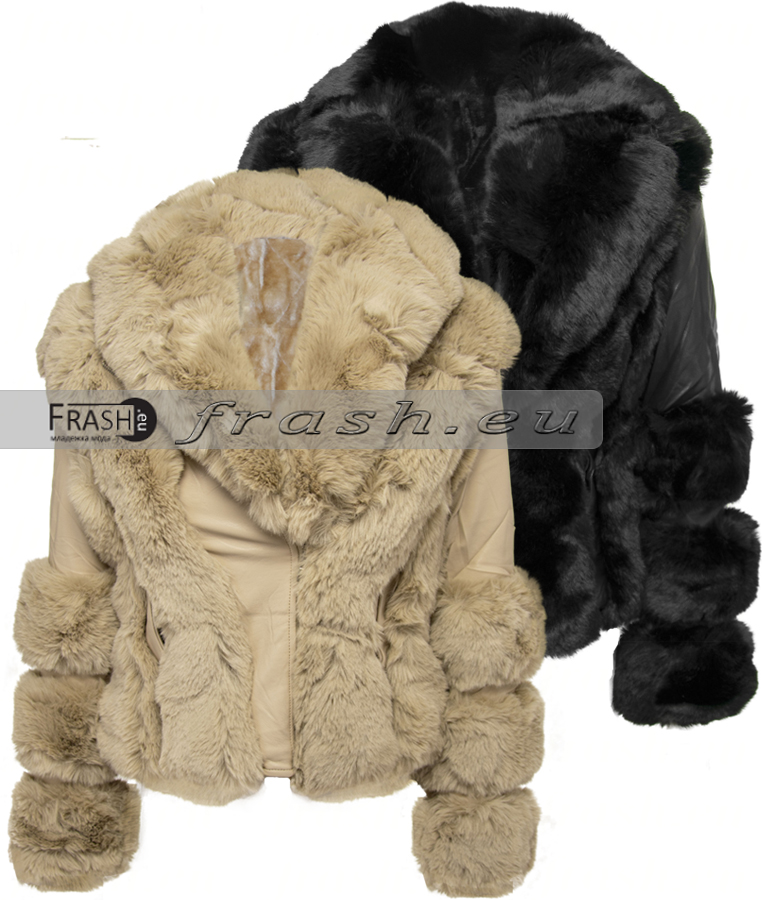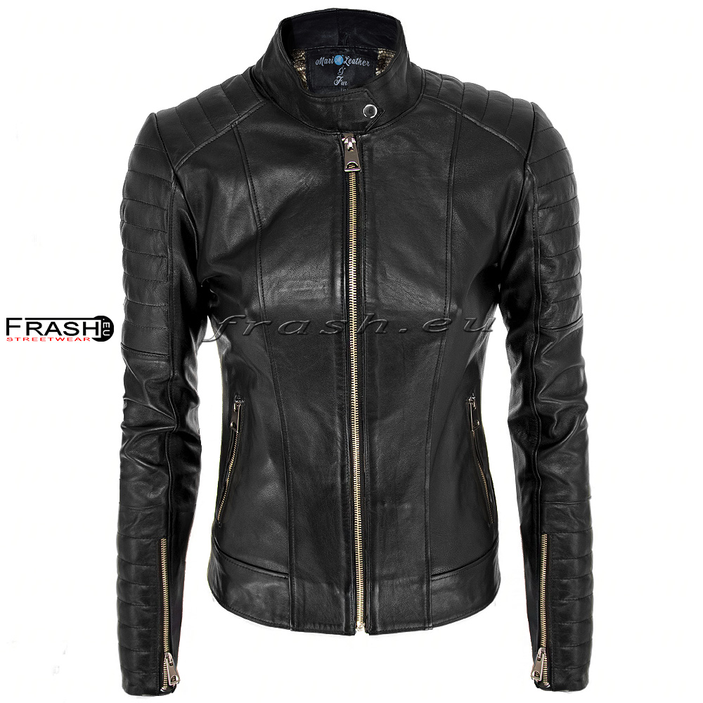 Дамско яке еко кожа с асиметричен цип и копчета черно Ft6888