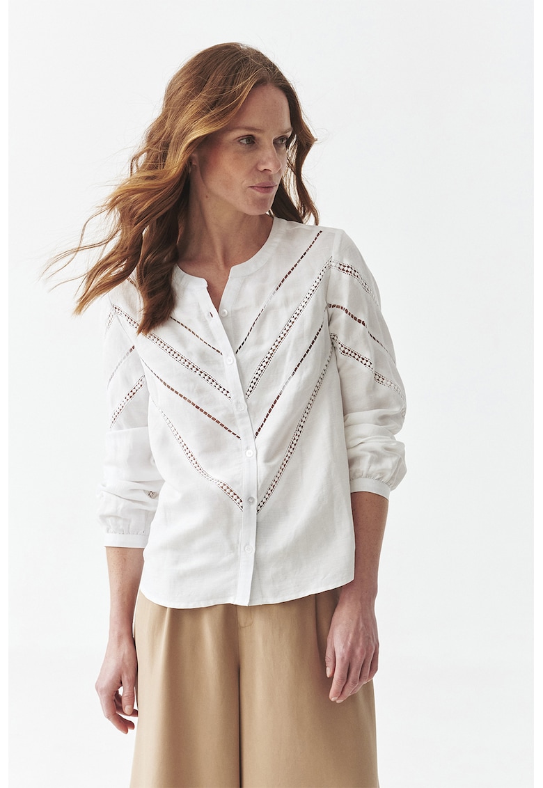Относно Ажурена риза с лен – Бял/Канелено кафяво Tatuum