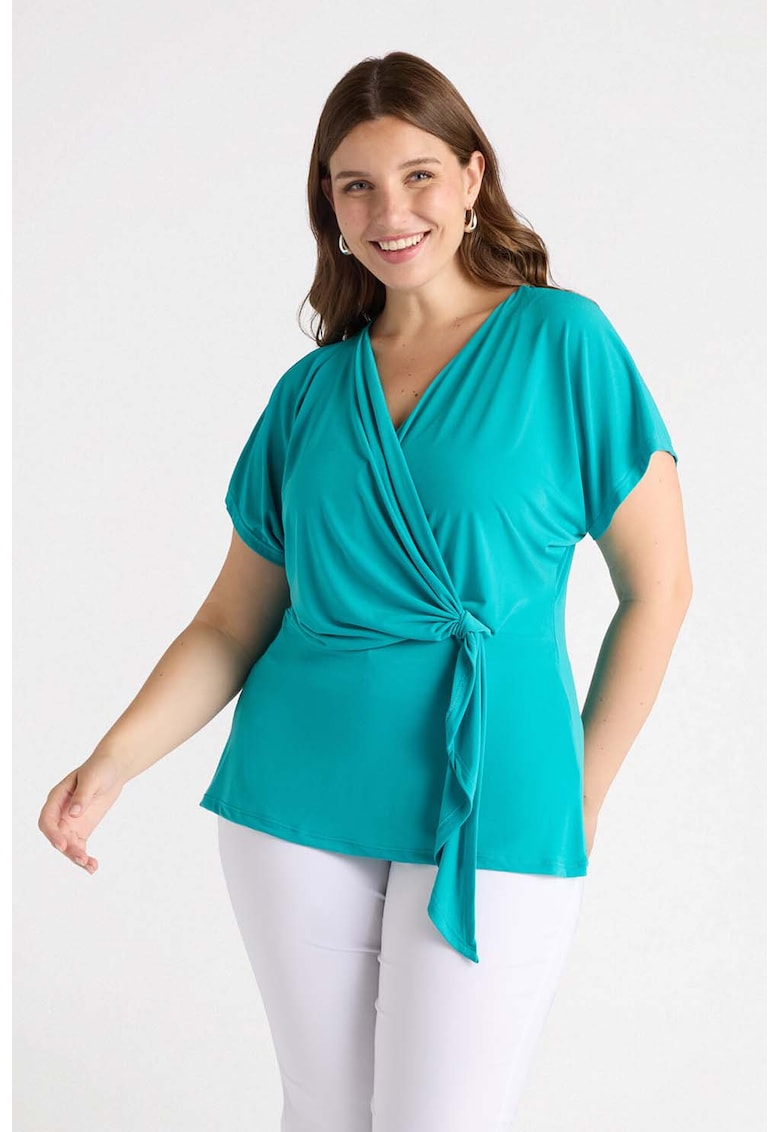 Блуза с къси ръкави и застъпено деколте – Тюркоаз Fiorella Rubino