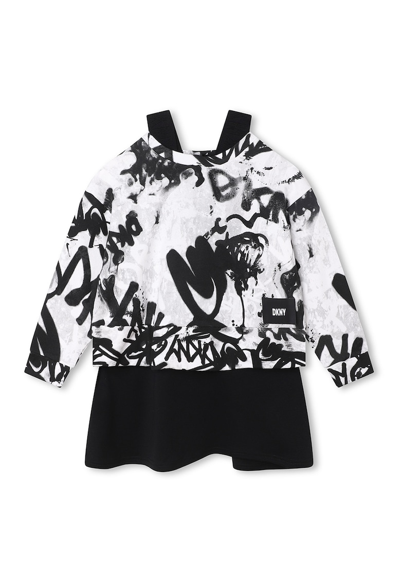 Относно Блуза с щампа и рокля – 2 части – Бял/Черен DKNY