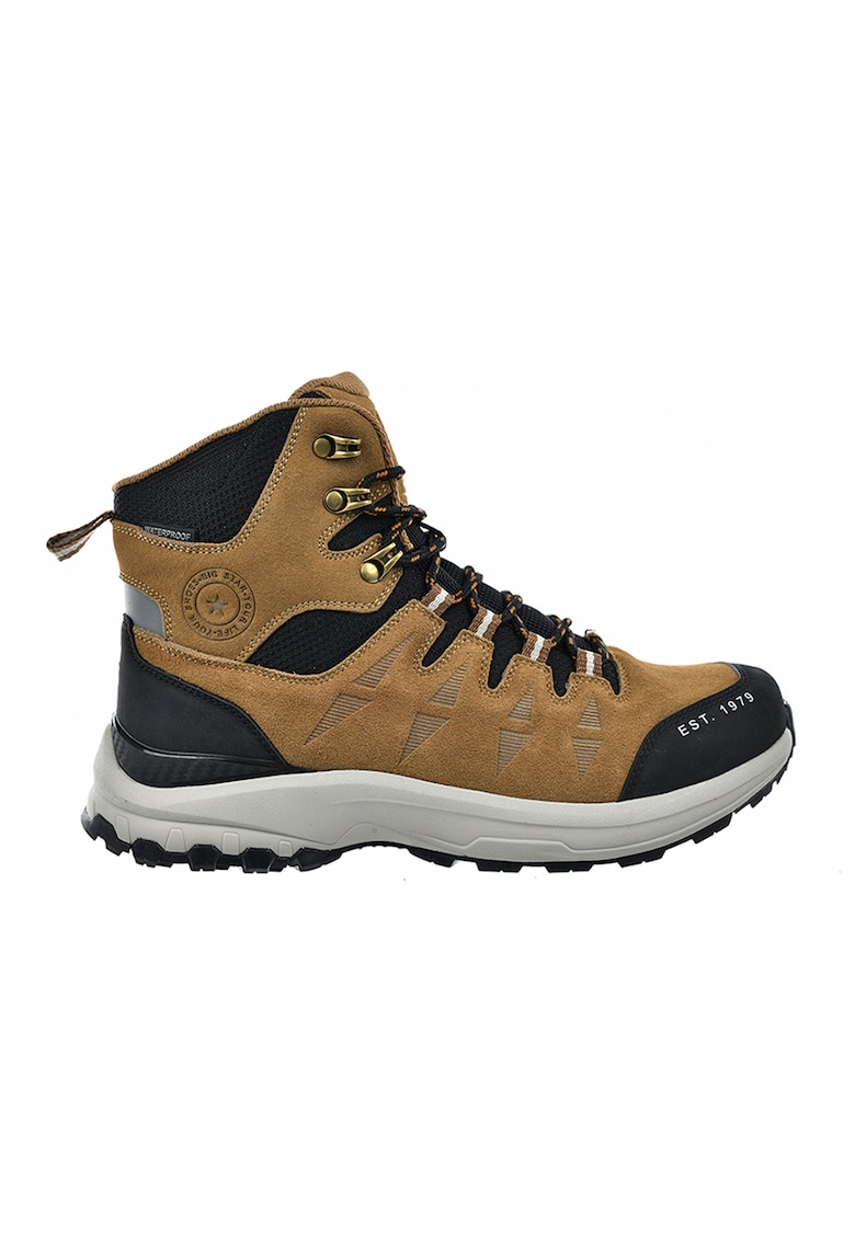 Характеристики Тип: кубинки Цвят: черен – camel Материал: текстил – велур Принт: лого Стил: ежедневен Връх: кръгъл Тип на подметката: плоска Закопчаване: връзки Състав Горна част: текстил – велур Материал интериор: текстил Материал подметка: други материали