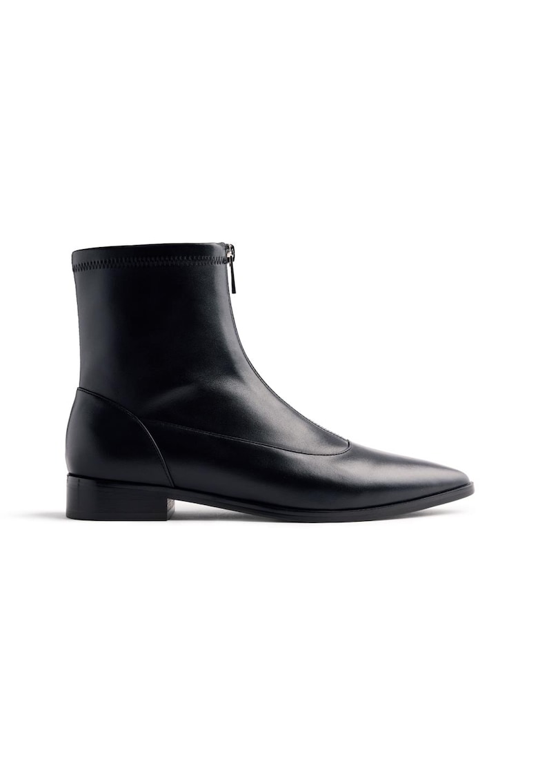 Характеристики Тип: с ток Цвят: черен Материал: екологична кожа Принт: без принт Стил: ежедневен Връх: остър Тип на тока: масивен Детайли: омекотена стелка Цвят на метала: сребрист Закопчаване: цип Състав Горна част: други материали Материал интериор: други материали …