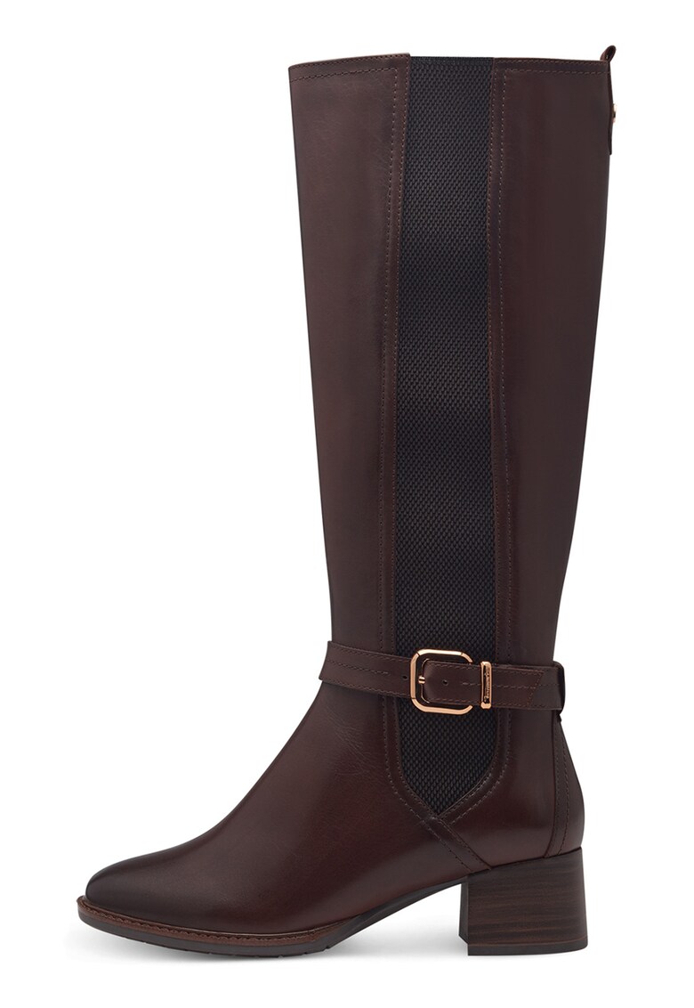 Оригинални Ботуши до коляното от кожа и еко кожа – Коняк кафяв Tamaris Comfort