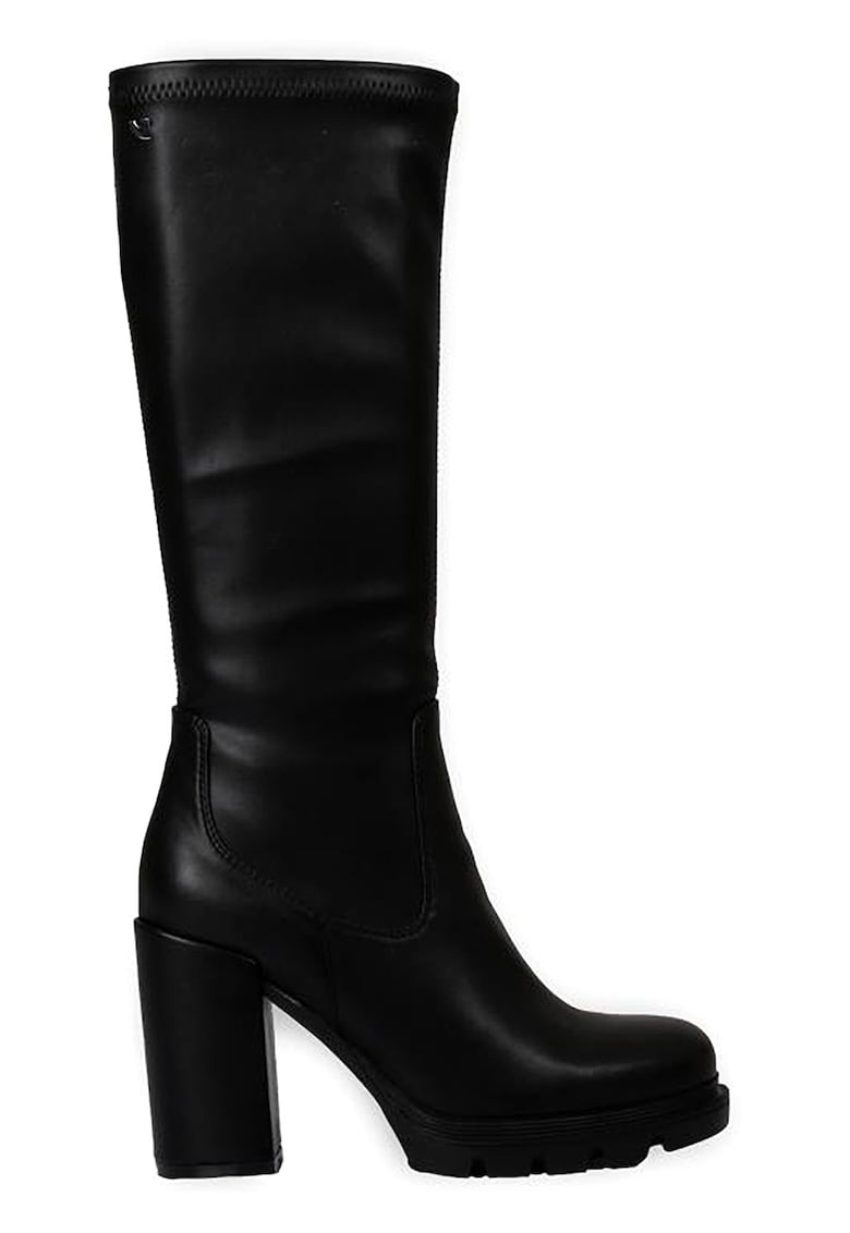 Характеристики Тип: с ток Цвят: черен Материал: екологична кожа Принт: без принт Стил: ежедневен Връх: кръгъл Тип на тока: масивен Височина: 33 cm Цвят на метала: черен Закопчаване: без закопчаване Състав Горна част: други материали Материал интериор: текстил Материал …