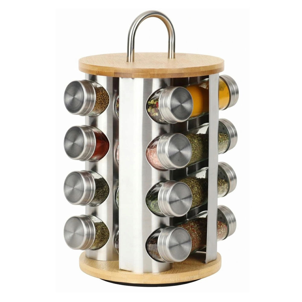 Бурканчета за подправки на стойка Klausberg KB 7553, 16бр. бурканчета, Бамбук и стомана, Инокс/кафяв на най-добра цена.