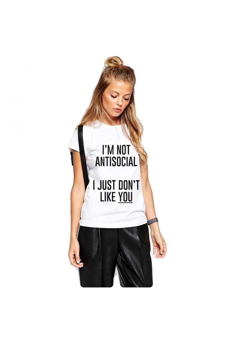 Бяла дамска тениска – не съм асоциална THEICONIC