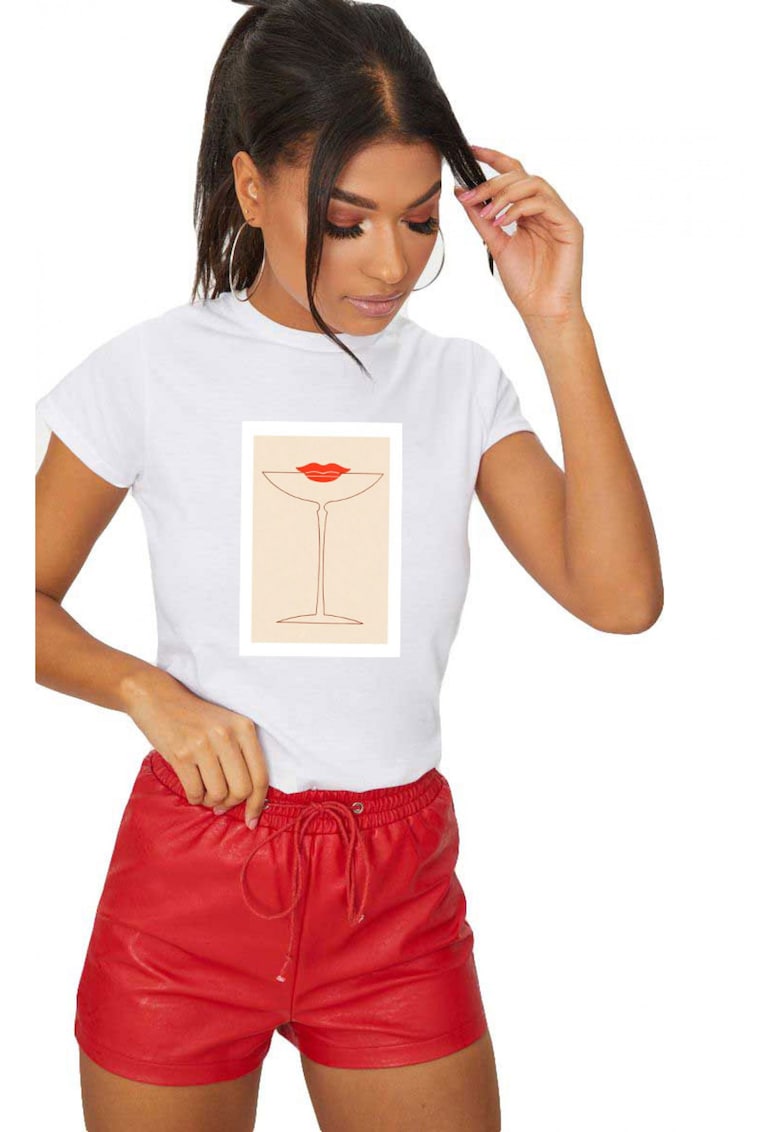 Бяла дамска тениска – Cocktail Kiss THEICONIC