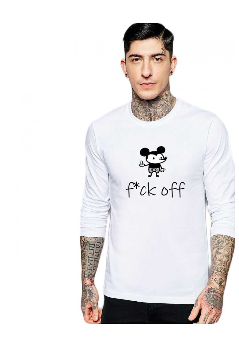 Бяла мъжка блуза – ф*к от Мики Маус THEICONIC