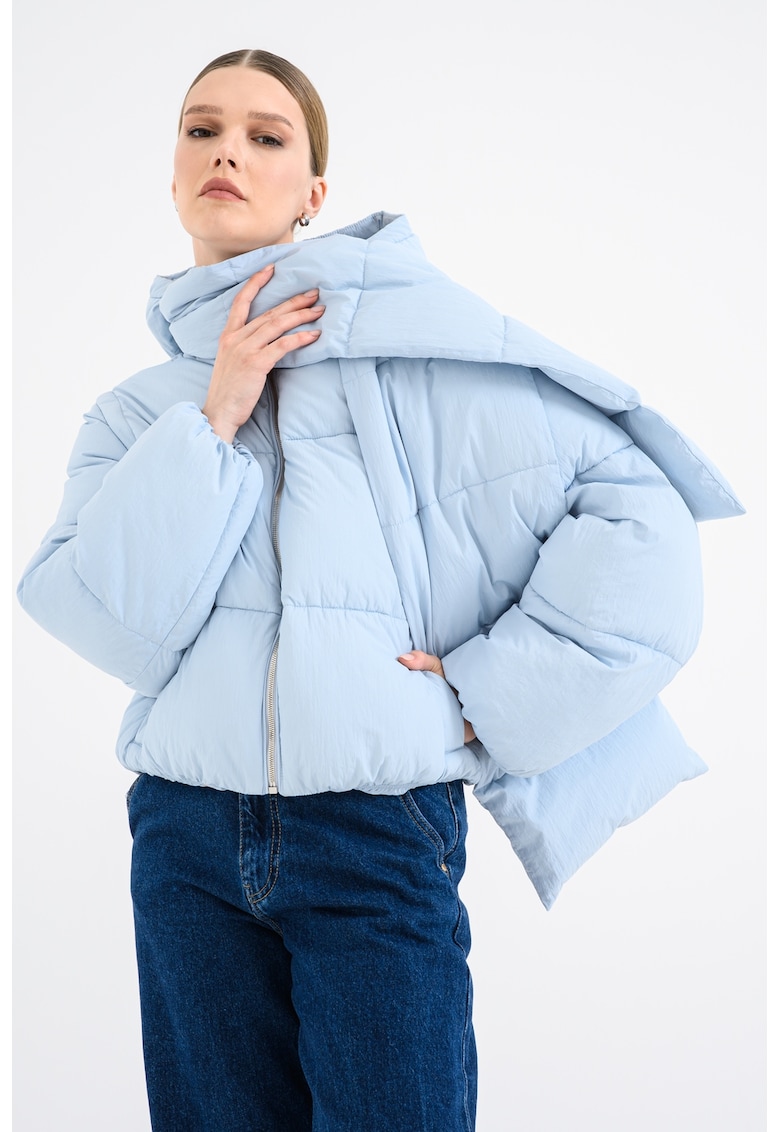 Относно Ватирано зимно яке с отделящи се ръкави и шал – Ледено синьо BOSS