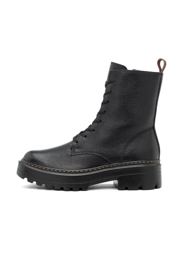 Характеристики Тип: с ток Цвят: черен Материал: eстествена кожа Принт: без принт Стил: кубинки Връх: кръгъл Тип на тока: масивен Цвят на метала: черен Закопчаване: връзки Състав Горна част: кожа Материал интериор: текстил Материал подметка: други материали