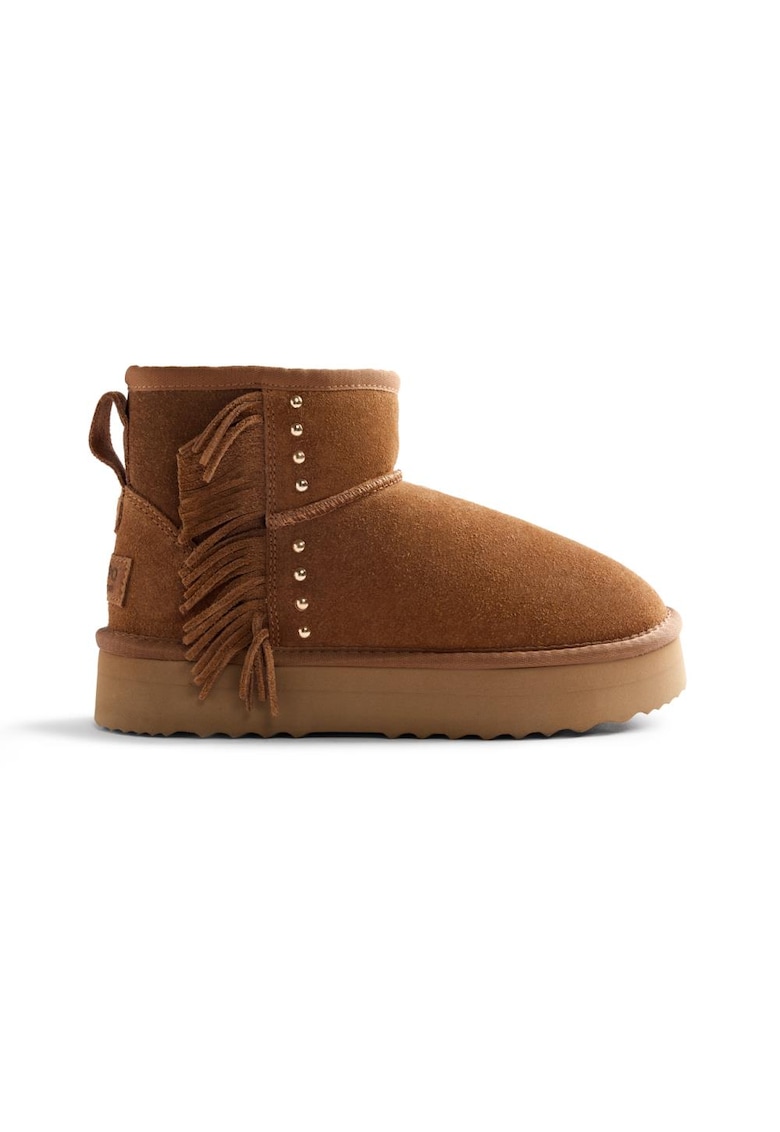 Характеристики Тип: с платформа Цвят: кафяв Материал: велур Принт: без принт Стил: ежедневен Връх: кръгъл Тип на подметката: равна платформа Технология: eva Цвят на метала: златист Закопчаване: без закопчаване Състав Горна част: велур Материал интериор: текстил Материал …