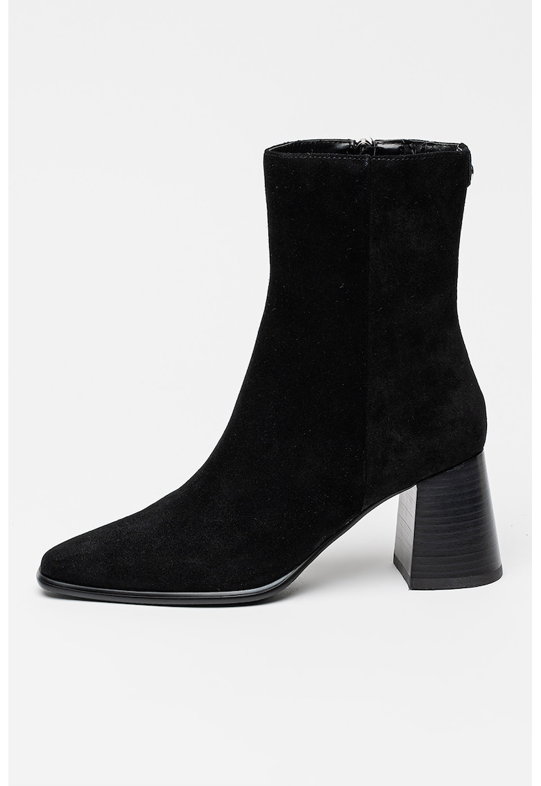 Характеристики Тип: с ток Цвят: черен Материал: велур Стил: ежедневен Тип на тока: масивен Цвят на метала: сребрист Закопчаване: цип Състав Горна част: suede Материал интериор: друг материал Материал подметка: други материали