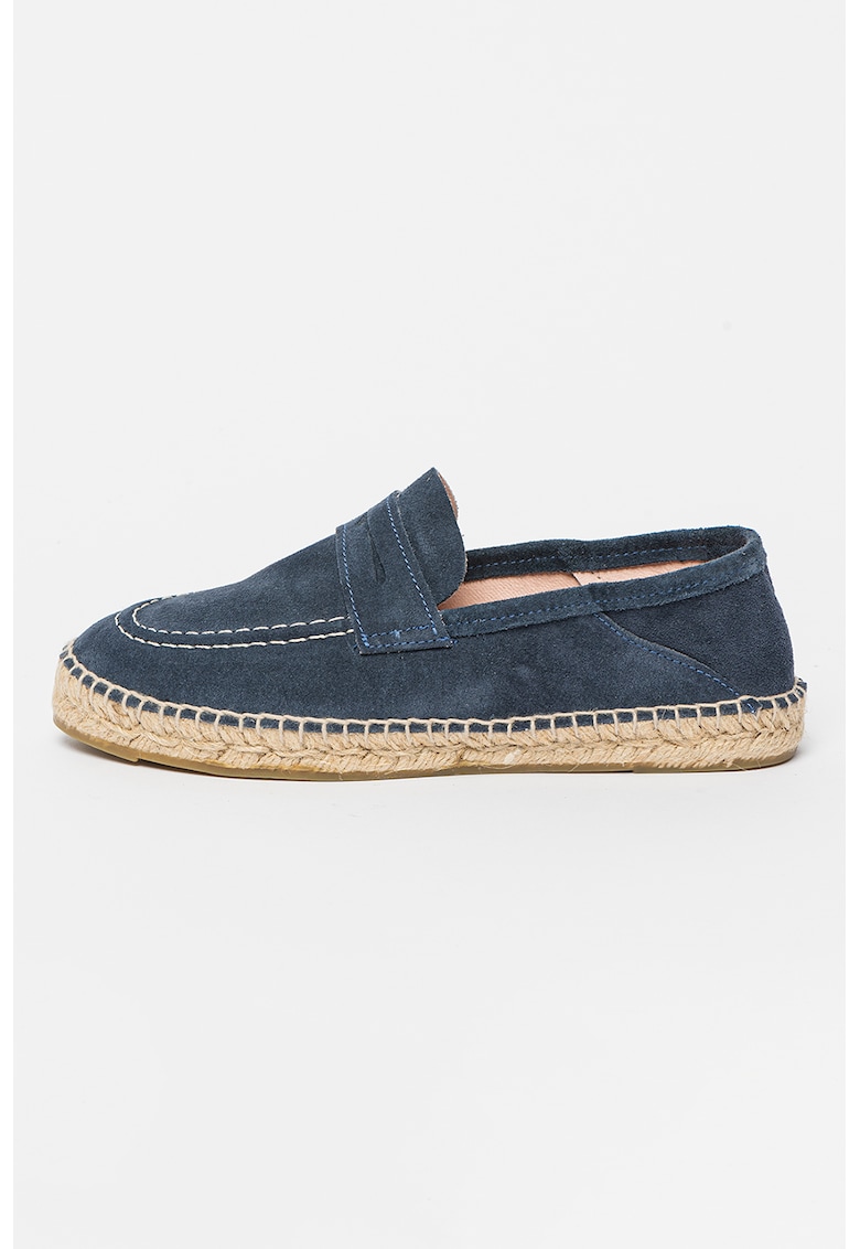 Характеристики Тип продукт: еспадрили Цвят: тъмносин Материал: велур Принт: без принт Стил: ежедневен Връх: кръгъл Тип на подметката: плоска Детайли: апликации от юта Закопчаване: без закопчаване Състав Горна част: велур Материал интериор: синтетичен Материал подметка: …