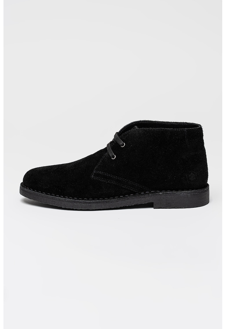 Характеристики Тип: боти Цвят: черен Материал: велур Стил: елегантен Връх: кръгъл Закопчаване: връзки Състав Горна част: suede Материал интериор: кожа Материал подметка: други материали