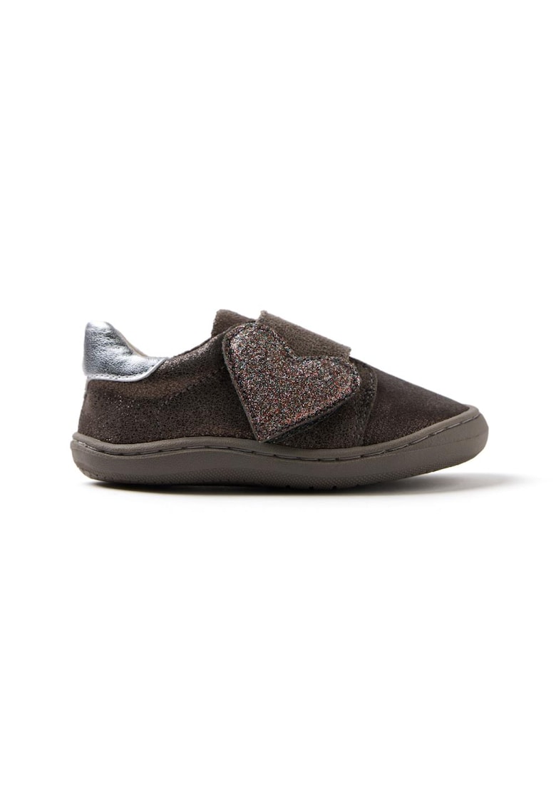 Характеристики Тип продукт: кецове Цвят: tъмносив Принт: без принт Стил: ежедневен Материал: велур Закопчаване: велкро Тип на подметката: плоска Детайли: отделящи се стелки Състав Горна част: велур Материал интериор: кожа Материал подметка: други материали