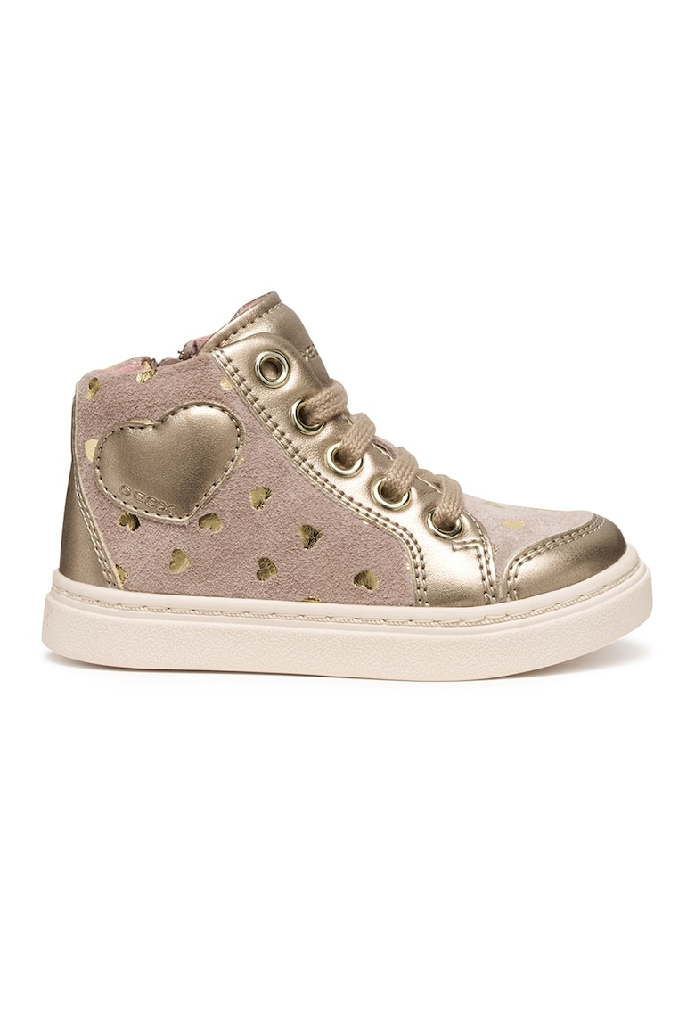 Характеристики Тип продукт: кецове Цвят: златист – бежов Принт: сърчица Стил: ежедневен Материал: велур – екологична кожа Закопчаване: връзки – цип Колекция: пролет – лято – есен – зима Технология: geox respira® Състав Горна част: suede – екологична кожа Материал интериор: текстил …
