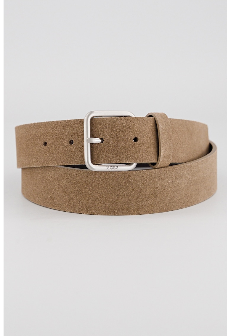 Велурен колан с метална тока – Тъмнобежово BOSS