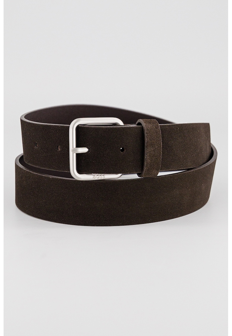 Велурен колан с метална тока – Тъмнокафяв BOSS