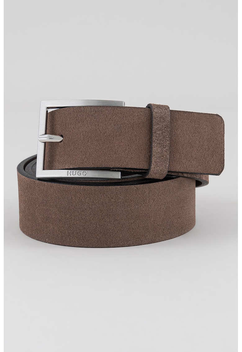Велурен колан Mirto с метална тока – Сиво-кафяв HUGO