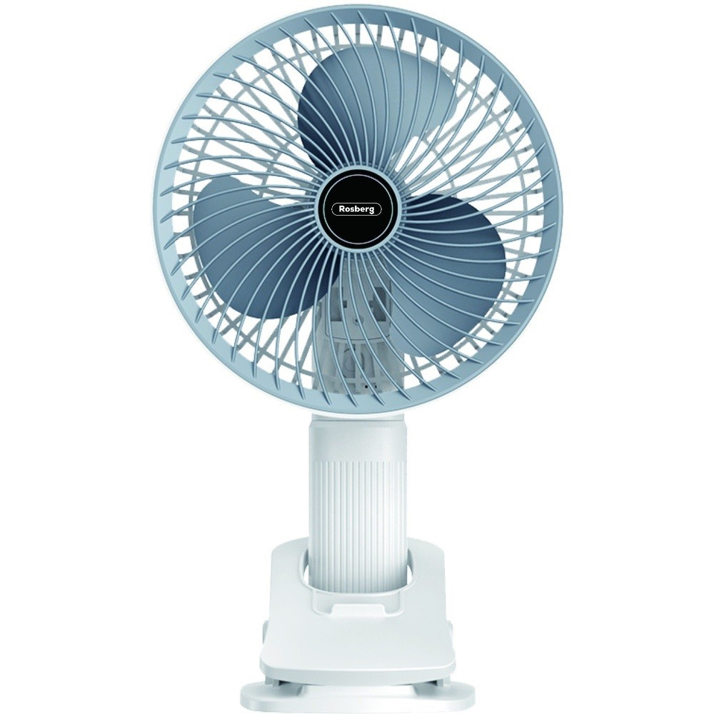Вентилатор с щипка USB Rosberg R51760H, 4.5W, 3 скорости, Автономия до 135 мин, Бял/Син