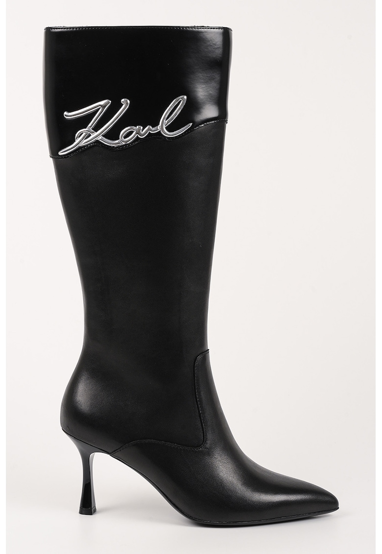 Високи ботуши с лого и котешки ток – Черен Karl Lagerfeld