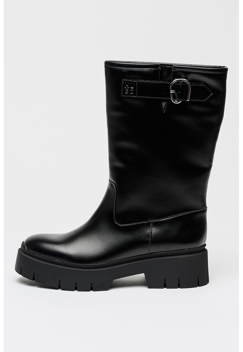 Високи ботуши Kris от еко кожа с декоративна тока – Черен HUGO
