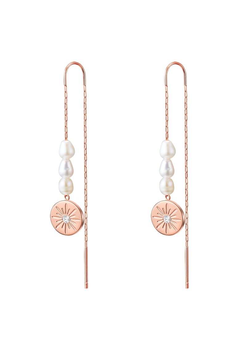 Характеристики Тип продукт: обеци Материал: инокс Цвят: розово златисто Детайли: декорация с кристали – сладководно култивирани перли – дълги Закопчаване: без закопчаване Бранд линия: urban Опаковка: продуктът се доставя в персонализирана опаковка. Състав Състав: …