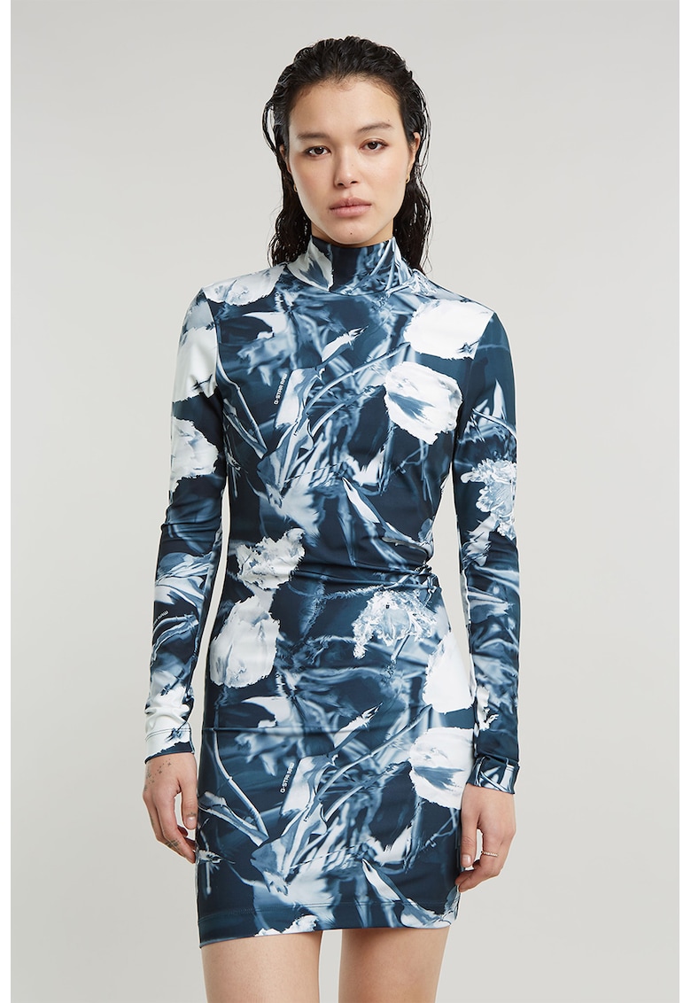 Вталена къса рокля тип поло – Бял/Петролно синьо G-STAR на ниска цена