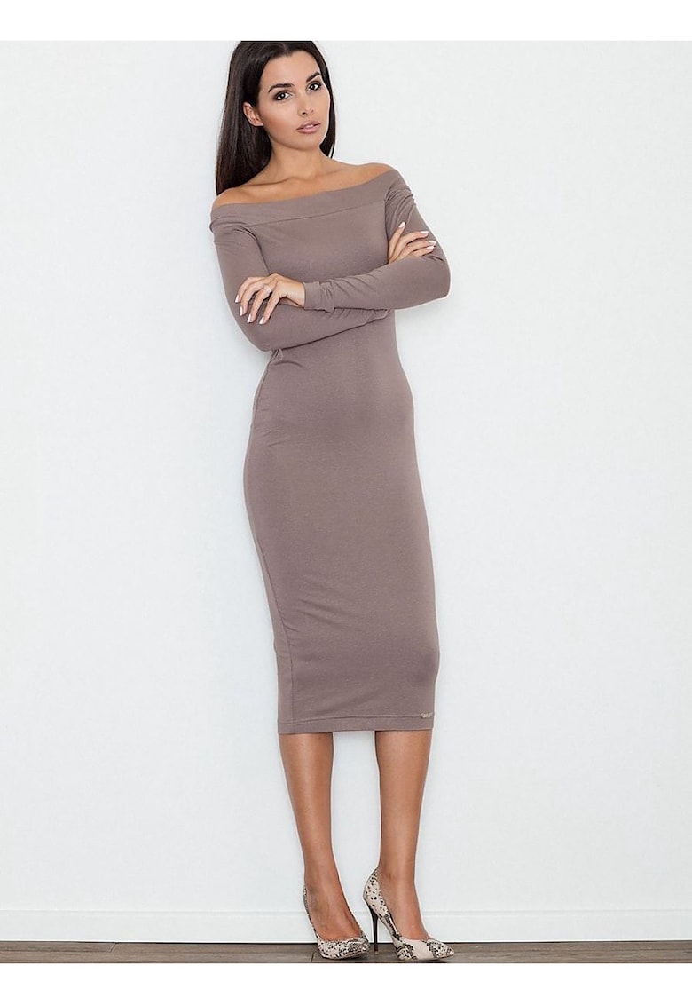 Вталена рокля до коляното – без джобове – кафяв цвят – вискоза Figl
