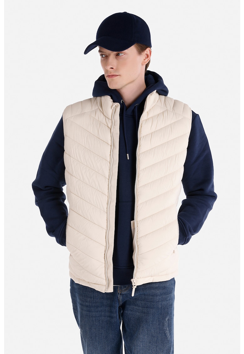 Характеристики Тип продукт: елек Цвят: слонова кост Стил: ежедневен Материал: полиамид Кройка: стандартна Принт: без принт Качулка: без качулка Яка: ниска Дължина ръкав: без ръкав Джобове: странични Детайли: капитониран дизайн – подплатен модел Закопчаване: цип Състав …