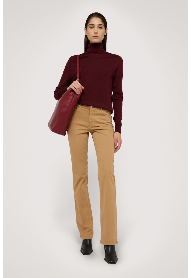 Характеристики Тип продукт: пуловер Цвят: тъмночервен Принт: без принт Материал: вълна Модел: поло Кройка: стандартна Закопчаване: без закопчаване Дължина ръкав: дълъг ръкав Яка: висок Детайли: малко апликирано лого Състав Външна част: 100% необработена вълна