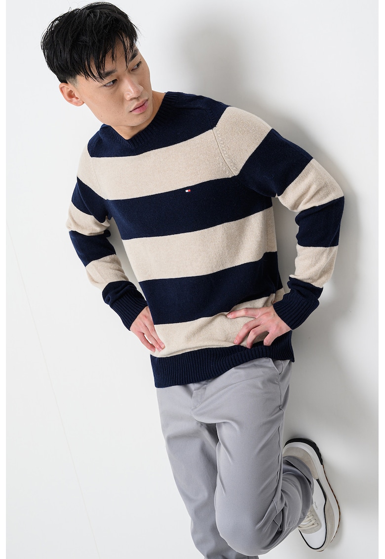Вълнен пуловер с лого – Светло бежово/Тъмносин Tommy Hilfiger