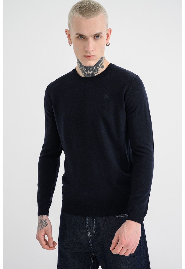 Вълнен пуловер с овално деколте – Ултрамарин синьо Karl Lagerfeld
