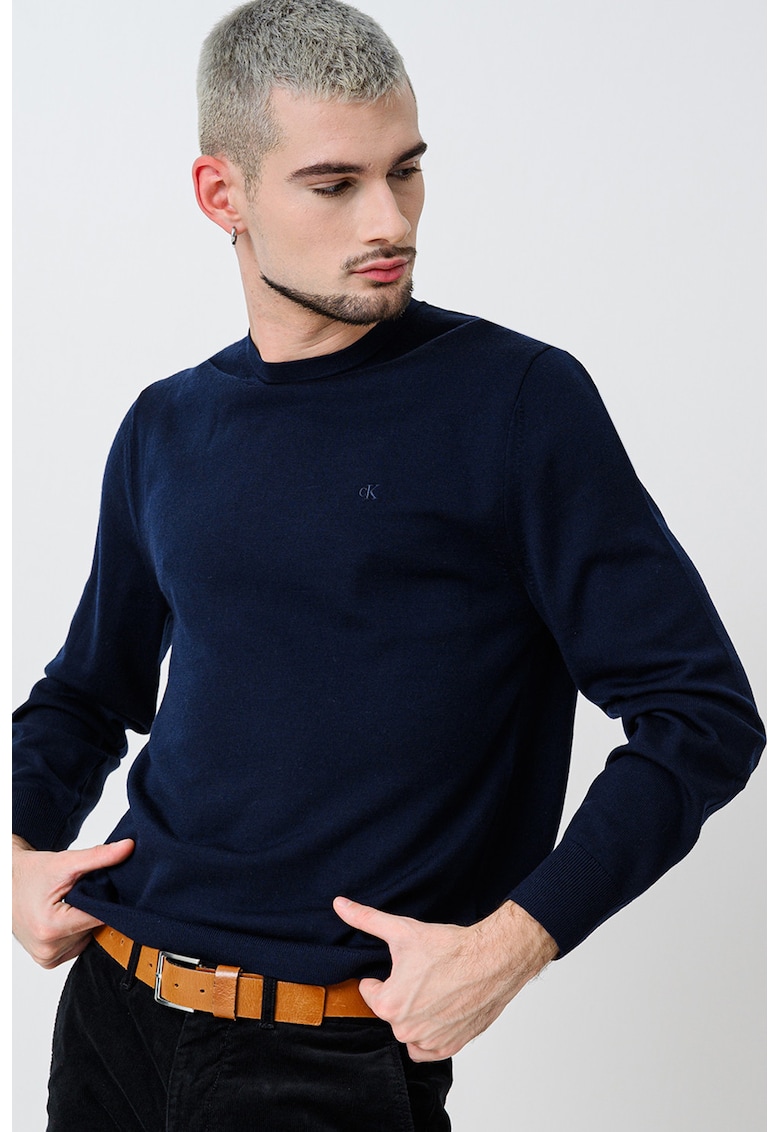 Относно Вълнен пуловер с овално деколте – Ултрамарин синьо CALVIN KLEIN