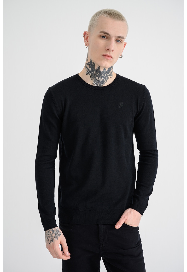 Вълнен пуловер с овално деколте – Черен Karl Lagerfeld