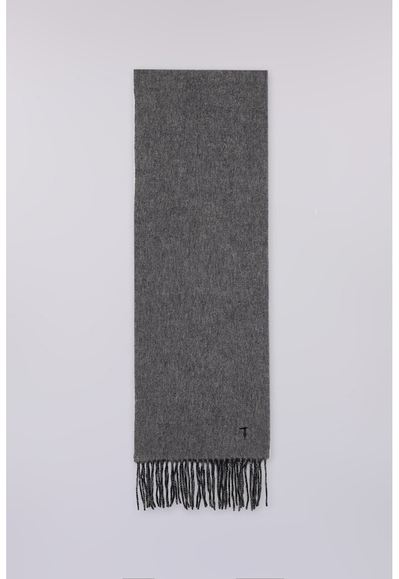 Вълнен шал с ресни - Меланж тъмно сиво Trussardi