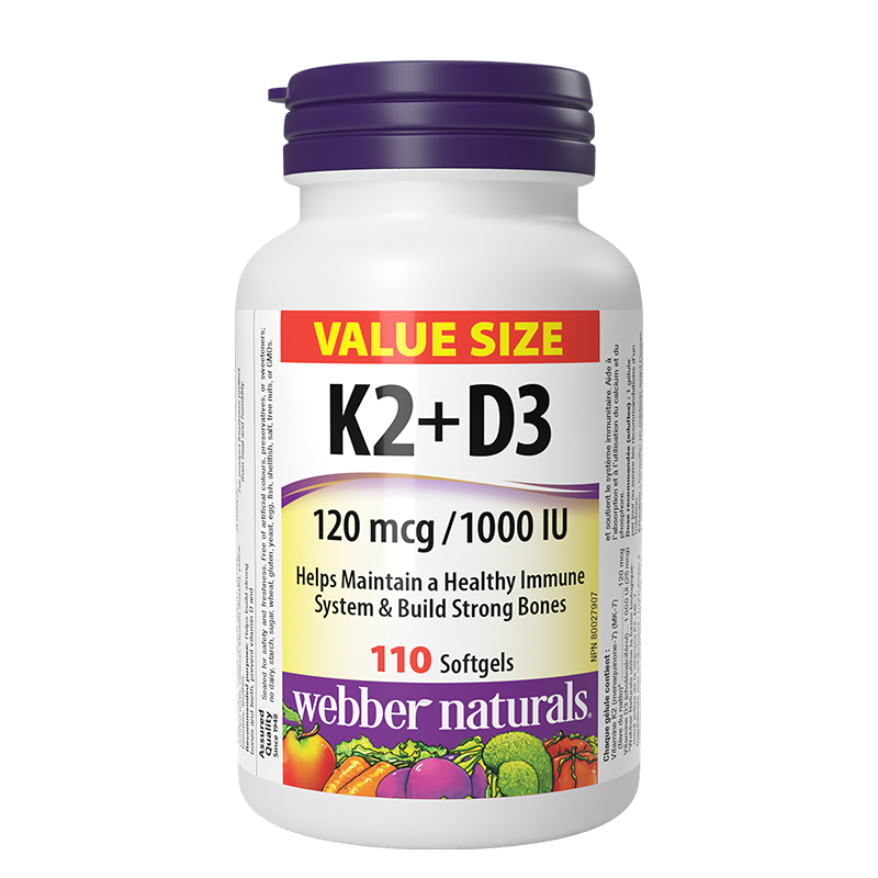 В подкрепа на костите и зъбите – Витамин K2 120 µg + D3 1000 IU 25 µg х 110 софтгел капсули/ 110 дози Webber Naturals най-добра цена