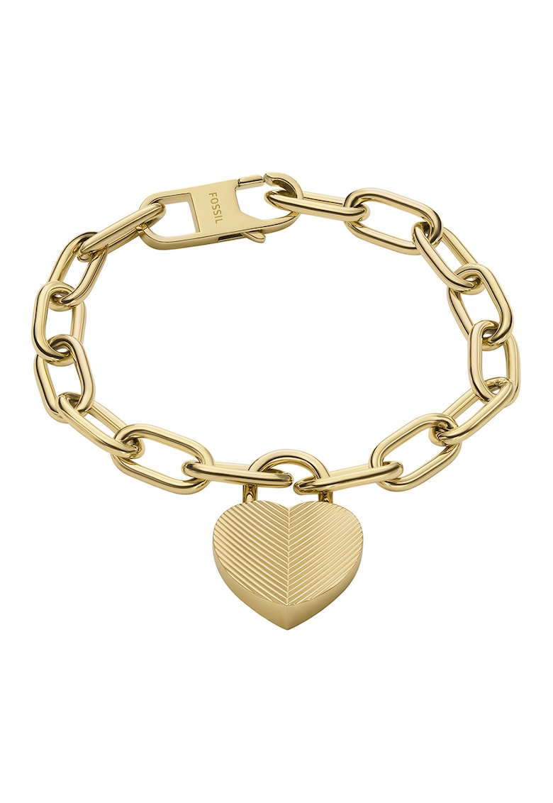 Изпитайте изключителното майсторство и вниманието към детайла, които идват с Гривна със сърцевидна висулка на Fossil. Гривна със сърцевидна висулка Fossil е продукт с прецизна изработка от първокласни материали, осигуряващи превъзходен комфорт и качество.
