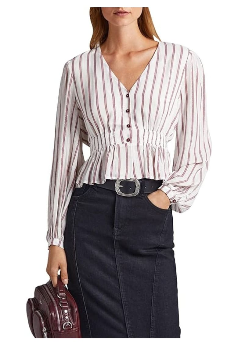 Дамска блуза Gema – бяла на райета – ефирна – вискоза лиосел Pepe Jeans