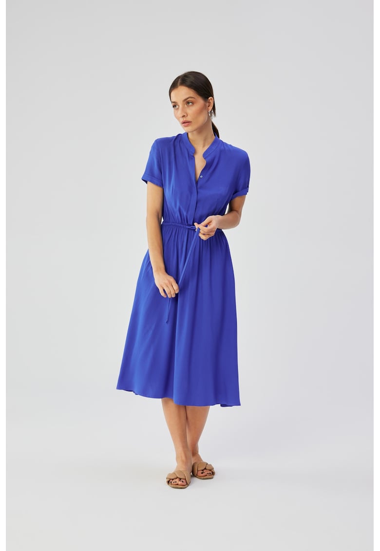 Дамска рокля – с висока яка и връзка на талията – полиестер – син MOE