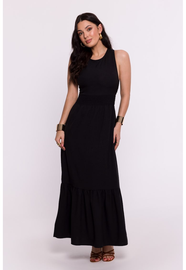 Дамска рокля – с гумен колан и връзка на гърба – Полиестер – Черна – М OEM