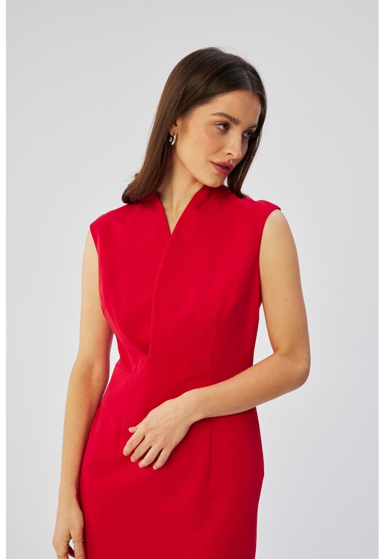 Дамска рокля – с деколте с фино застъпване – Червен полиестер MOE
