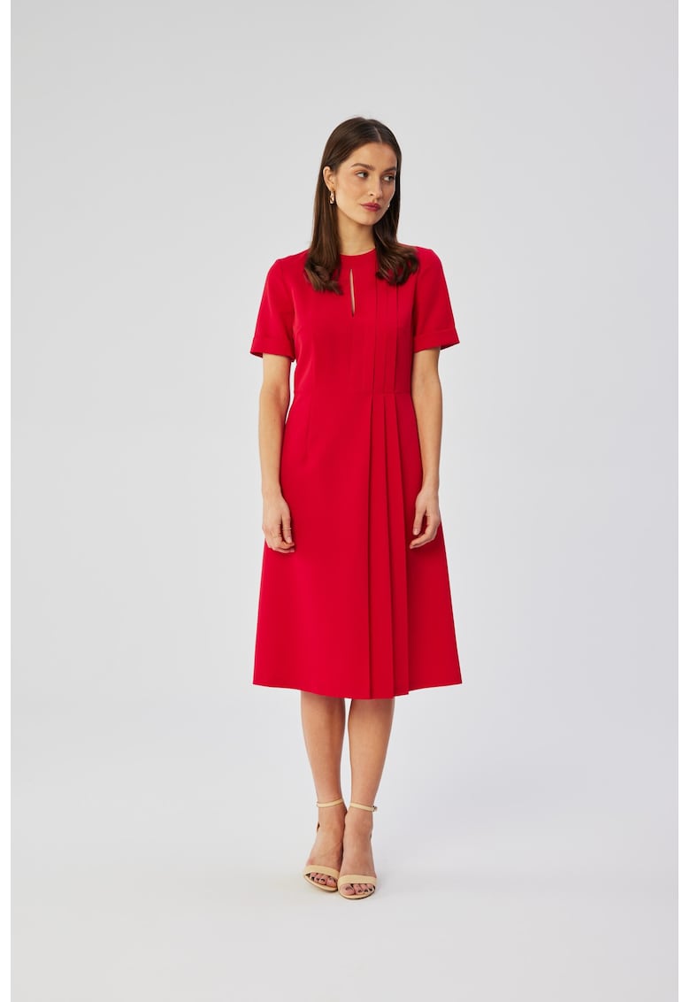 Дамска рокля – с декоративни странични плисета – полиестер – 678412 MOE