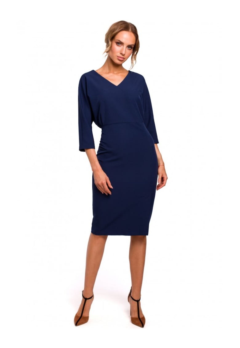 Дамска рокля V-образно деколте – Полиестер – Еластан – Син MOE
