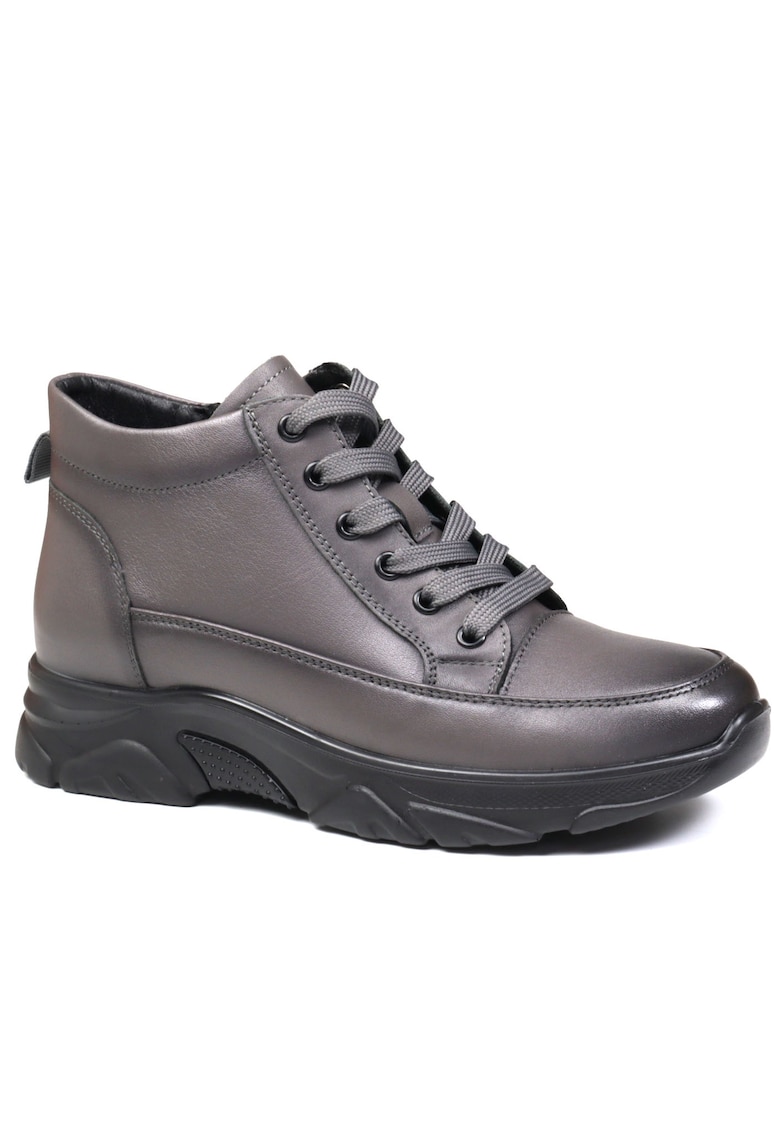 Характеристики Тип: ниски Цвят: сив Материал: eстествена кожа Принт: без принт Стил: ежедневен Връх: кръгъл Тип на тока: класически Тип на подметката: плоска Детайли: дресинг Технология: comode Цвят на метала: сребрист Закопчаване: цип Състав Материал подметка: други …
