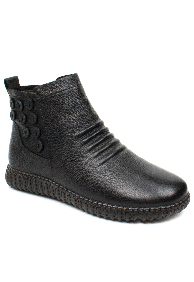 Характеристики Тип: ниски Цвят: черен Материал: eстествена кожа Принт: без принт Стил: ежедневен Връх: кръгъл Тип на тока: класически Тип на подметката: плоска Детайли: олекотен модел Технология: warm tech memory foam Допълнителна информация: противоударна стелка Закопчаване: цип …