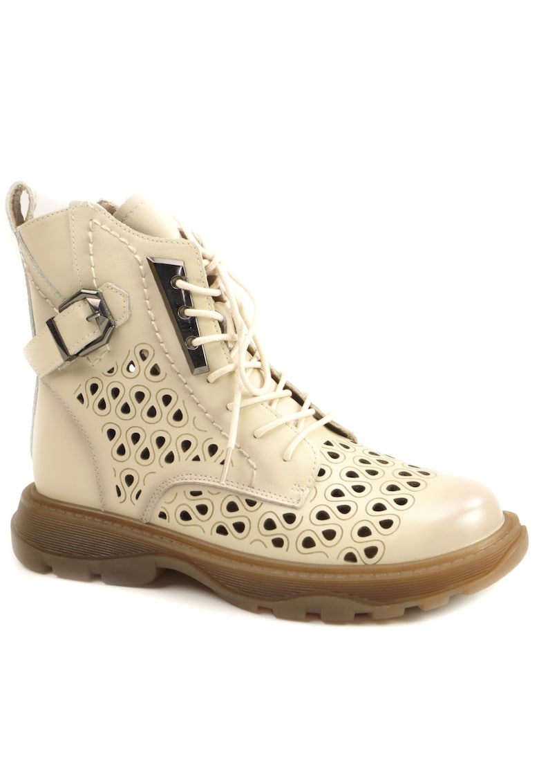Характеристики Тип: ниски Цвят: бежов Материал: eстествена кожа Принт: без принт Стил: ежедневен Връх: кръгъл Тип на тока: класически Тип на подметката: плоска Детайли: дресинг Технология: comode Цвят на метала: сребрист Допълнителна информация: облекло Закопчаване: цип …