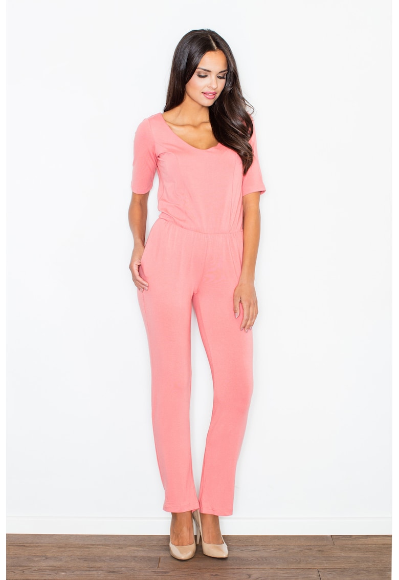 Дамски гащеризон – коралов цвят – вискоза – къс ръкав – лекота и елегантност Figl