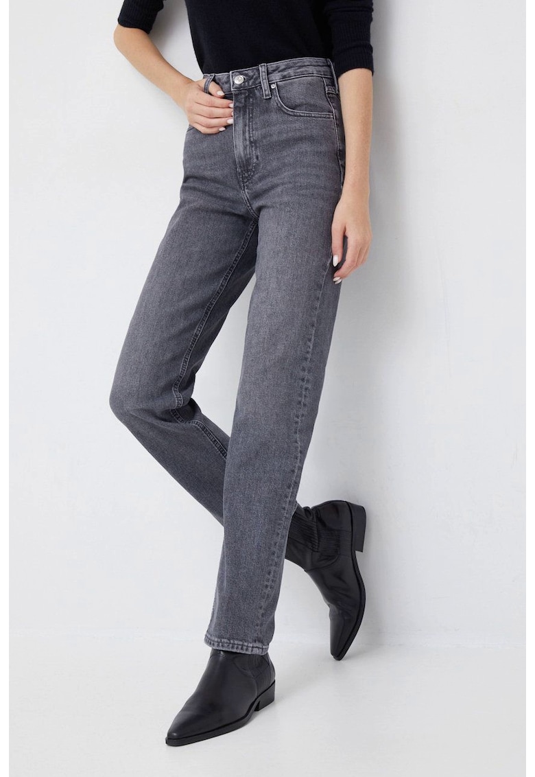 Характеристики Цвят: сив Принт: без принт Кройка: права Материал: памук Талия: висока Дължина: дълъг Джобове: 5 броя Закопчаване: цип