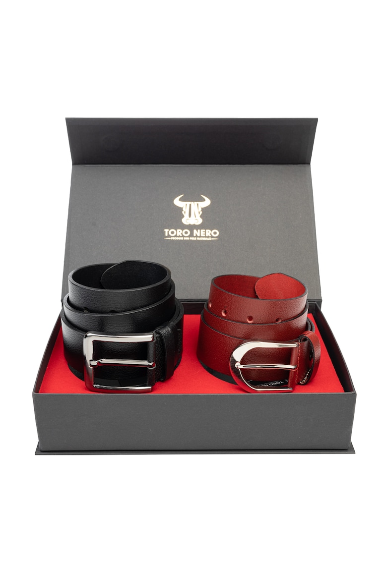 Дамски и мъжки комплект колан – естествена кожа – черно-червен – Плътен-Modern Night Toro Nero